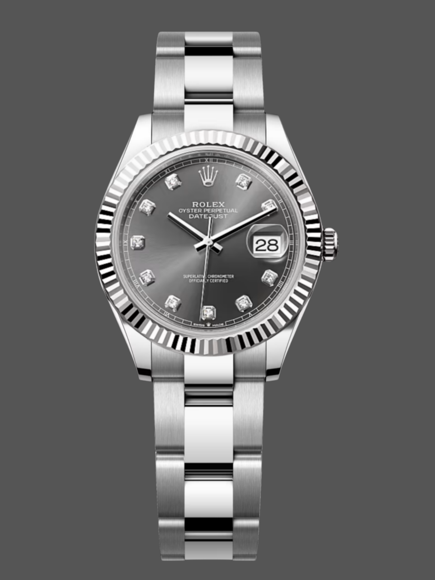 Rolex Datejust 31 Grey Diamond Dial Fluted Bezel 278274 Women's Watch