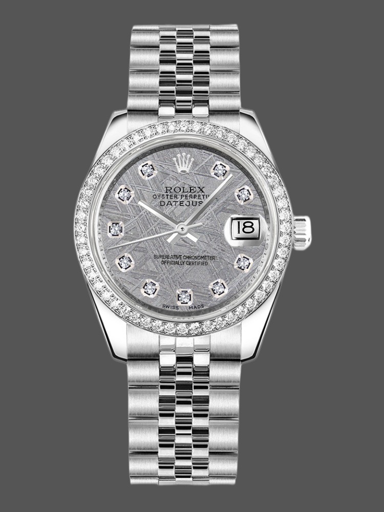 Rolex Datejust 178384 Meteorite Grey Dial Diamond Bezel 31MM Lady Replica Watch