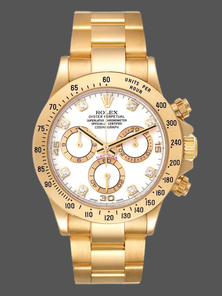 Rolex Cosmograph Daytona 116528 White Diamond Dial 40MM Mens Replica Watch